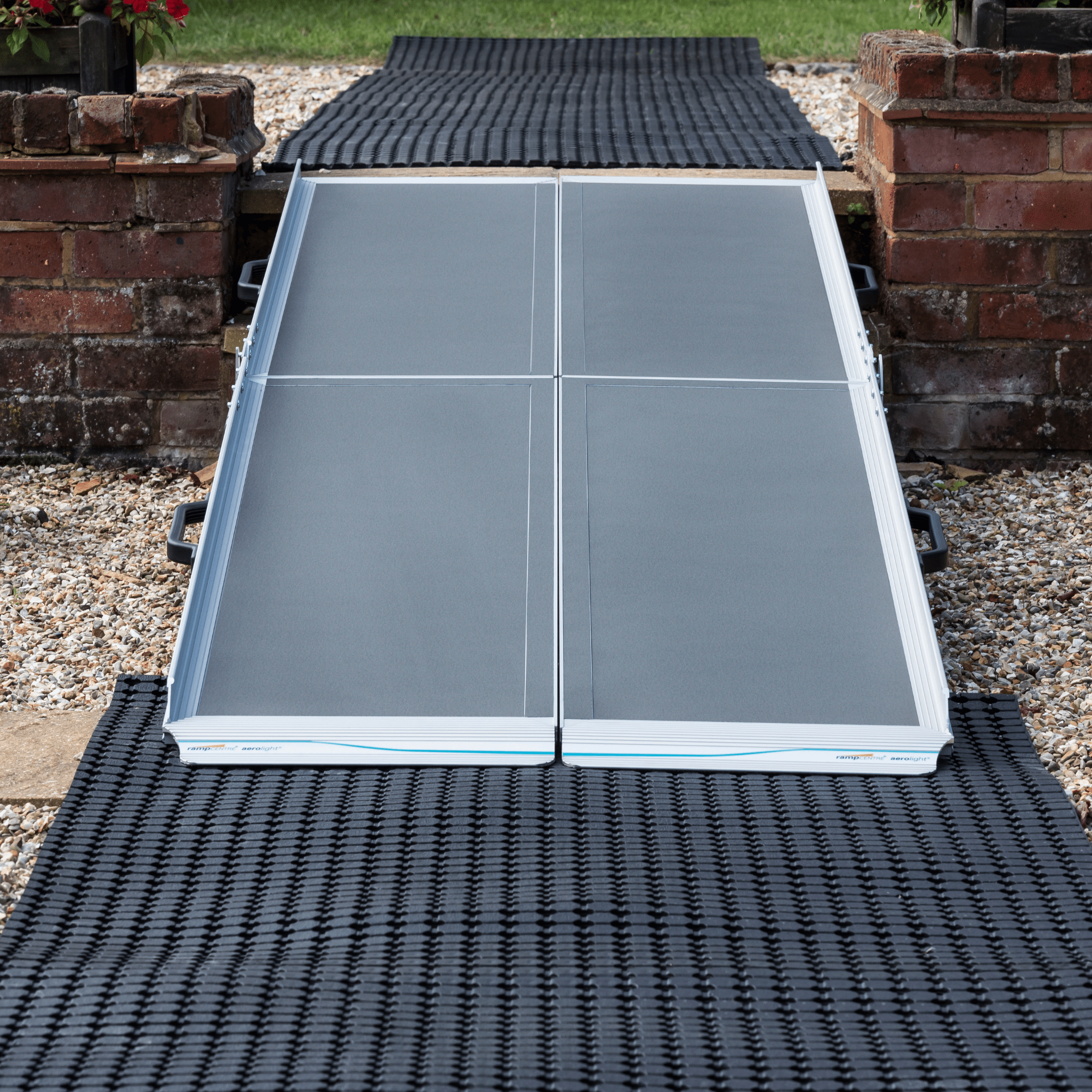 Its compact design and integrated rigid handles ensure effortless positioning, while safety hinges with pinch protection guarantee secure operation. The full-width anti-slip surface provides confident traction for scooters, powerchairs and walkers alike.