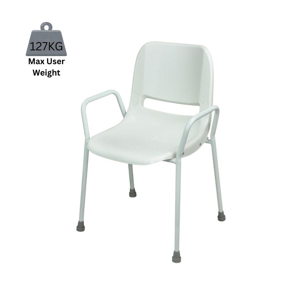 One of the key features of the Milton Shower Chair is its stackable design, allowing for easy storage—ideal for care homes, clinics, or shared bathrooms. Despite its compact and lightweight frame, it supports users up to 127 kg (20 stone), making it a dependable solution for safe, independent bathing.