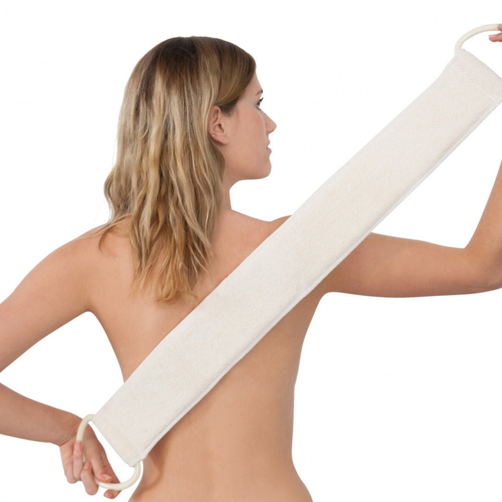 The flannel strap is ideal for someone with limited flexibility to wash their back or those other difficult to reach areas, such as the soles of the feet. One side is made of soft terry cotton and provides a very comfortable and convenient way to wash. On the reverse side of the strap is a coarser foam material, which can be used to tone and exfoliate. The handles are made from there clear plastic handle, and are easy to grip. The matching hand mitt is also double sided, with a soft terry cotton on one side for those delicate areas and a coarser side for a more invigorating clean.