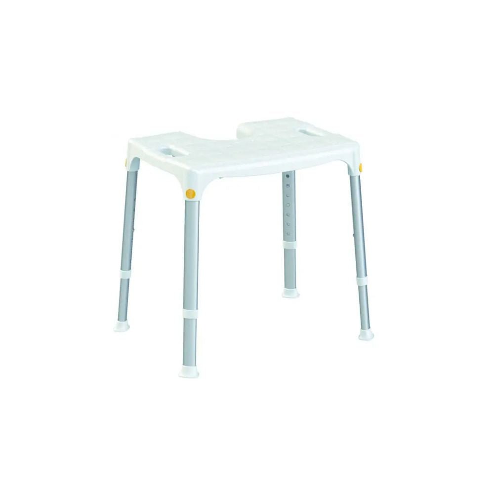 With wide rubber-tipped legs, the chair remains secure on wet surfaces, reducing the risk of slips. The ergonomic cut-out seat promotes hygiene and can be positioned either at the front or the back depending on user preference. Height-adjustable legs accommodate various user needs, and the supportive armrests offer added confidence when sitting or standing.