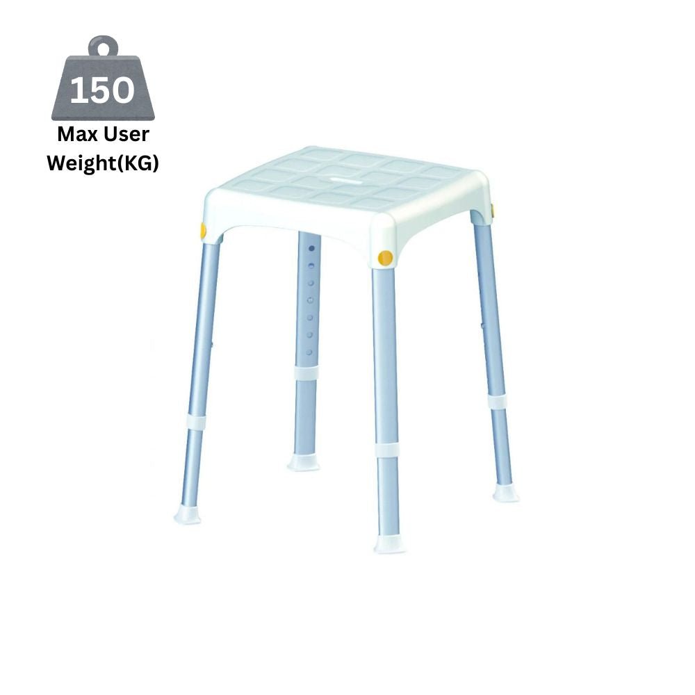 Safety is a top priority. The stool is fitted with non-slip rubber tips on each leg to ensure maximum grip on wet bathroom floors, helping to prevent slips and falls. Despite its lightweight frame, it supports up to 150 kg, offering peace of mind with every use.