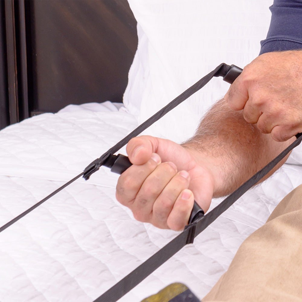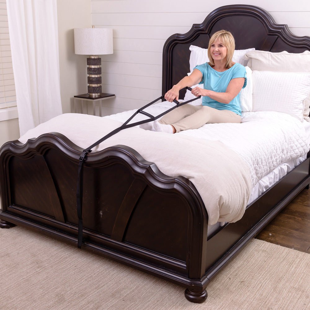 The BedCaddie provides firm assistance while laying in bed to pull yourself to an upright position. It is made of a durably nylon construction and can support weight up to 136kg.