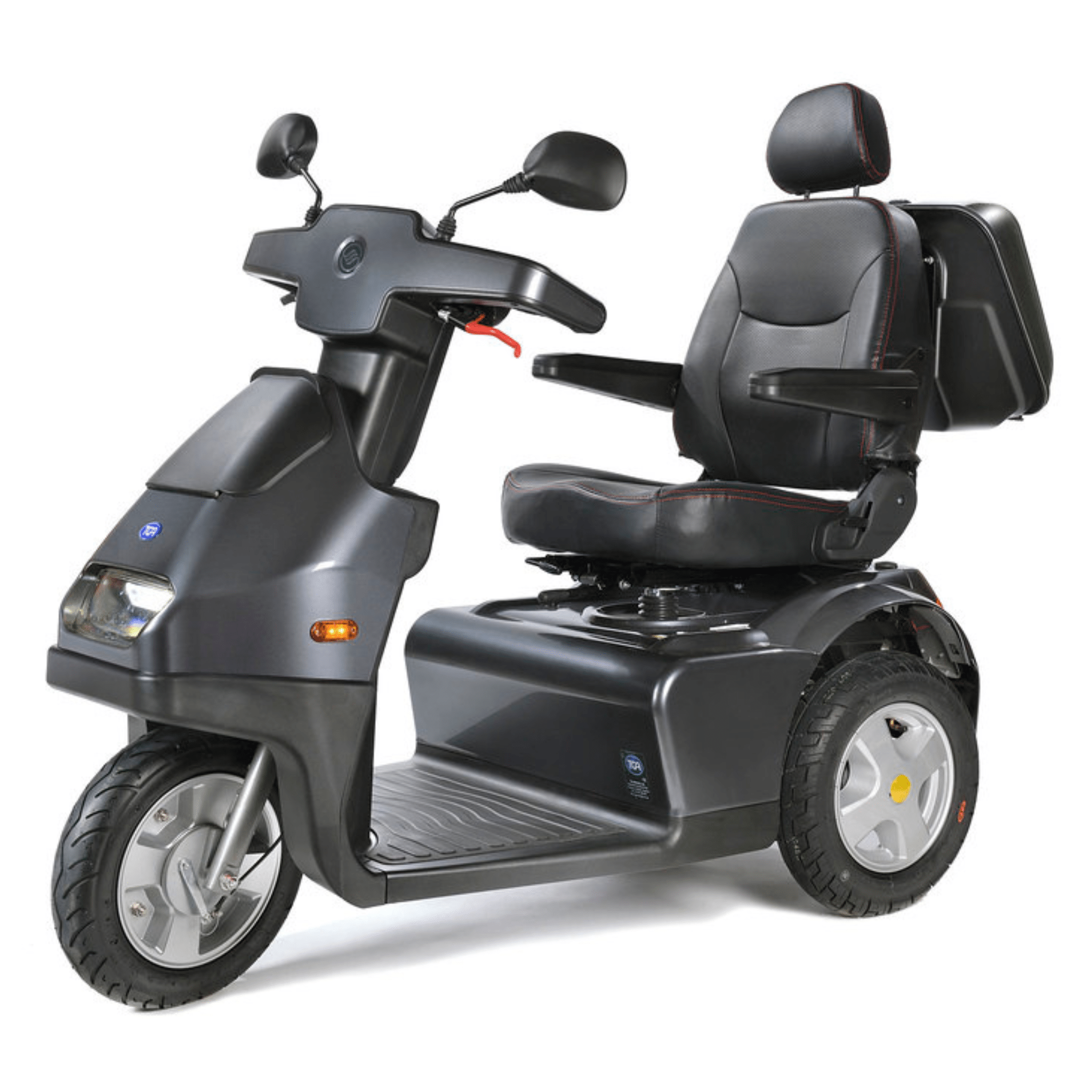 Fully active, adjustable suspension works alongside large alloy wheels and pneumatic tyres to absorb bumps and uneven ground, making rough paths, pavements and countryside routes feel effortless. Excellent ground clearance and a tight turning circle give you confidence whether you’re navigating outdoor spaces or manoeuvring closer to home.