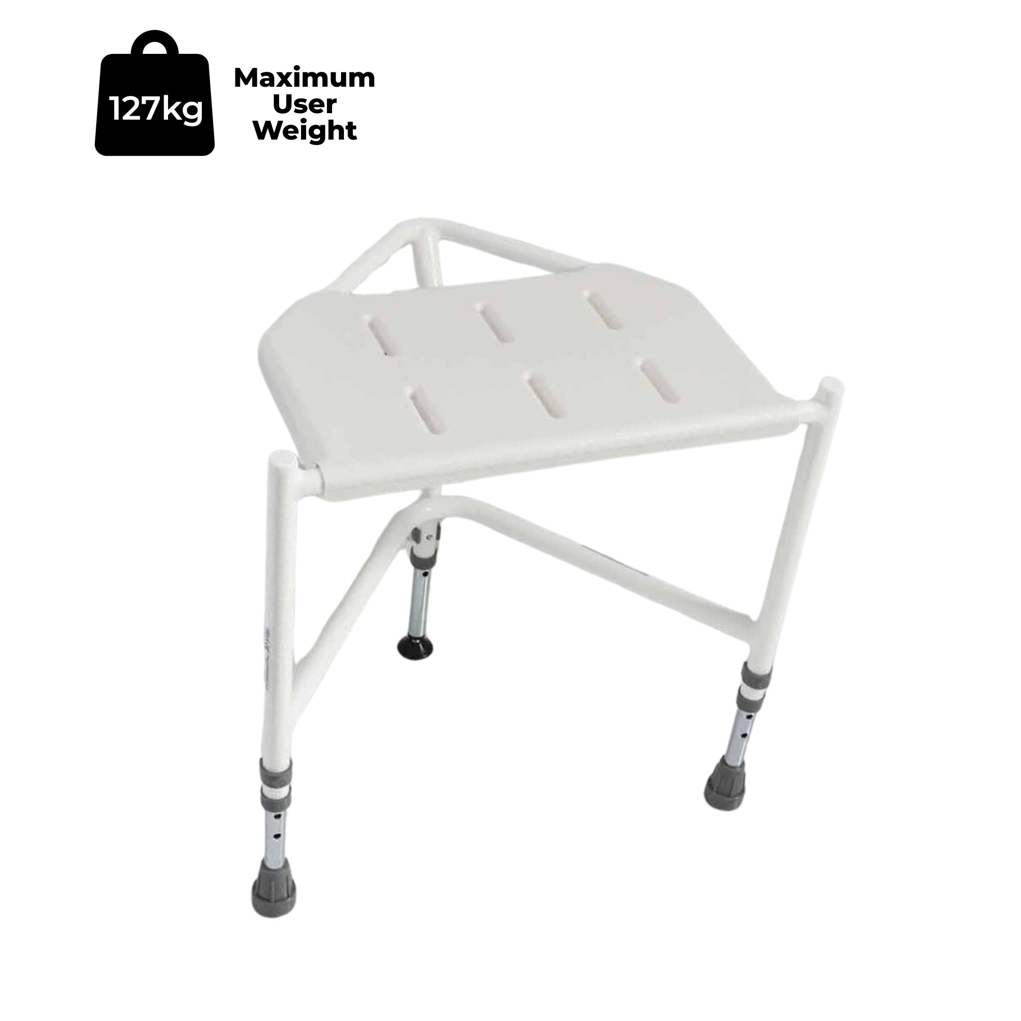 The unique corner configuration isn’t just a space-saver—it’s a game-changer for users with smaller showers or bathrooms. By fitting neatly into the corner, the stool allows more freedom of movement and better accessibility for both users and carers. It’s ideal for maximising useable space without compromising on support.