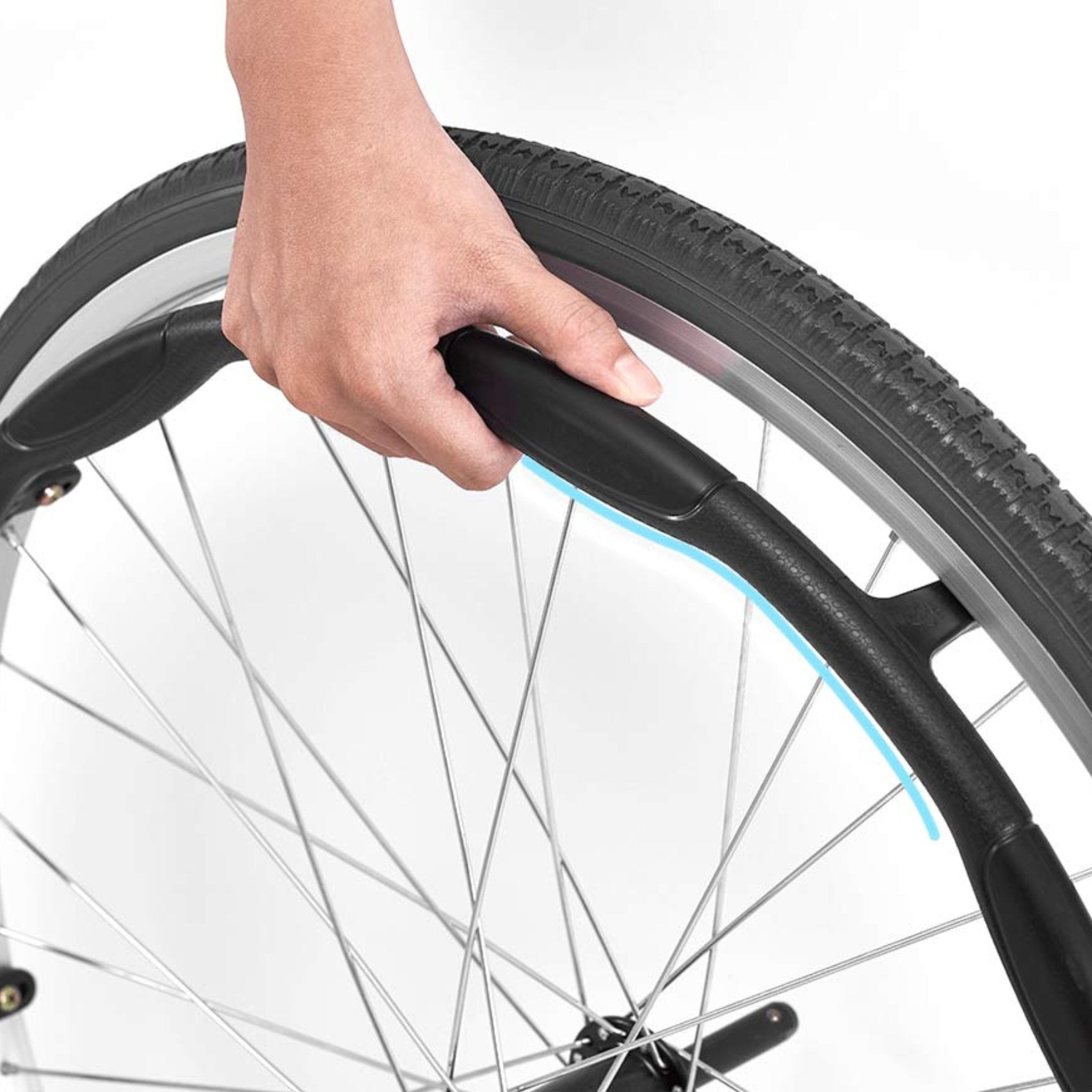 The new ergonomic handrim provides comfort and greater mobility for better propulsion and efficient braking.