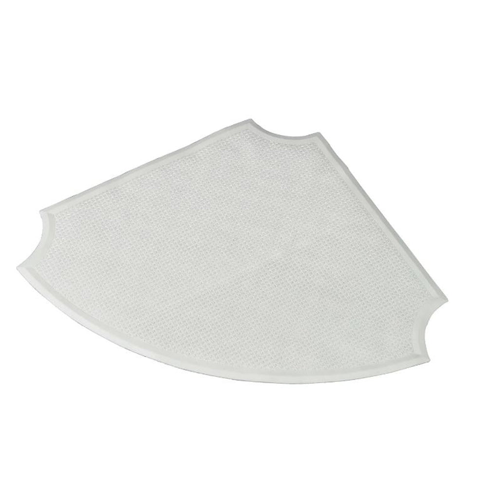 A unique design that fits corner showers to reduce the risk of slipping. The basket-weave pattern is and effective non-slip surface and the mat is held in place with numerous, large suckers.