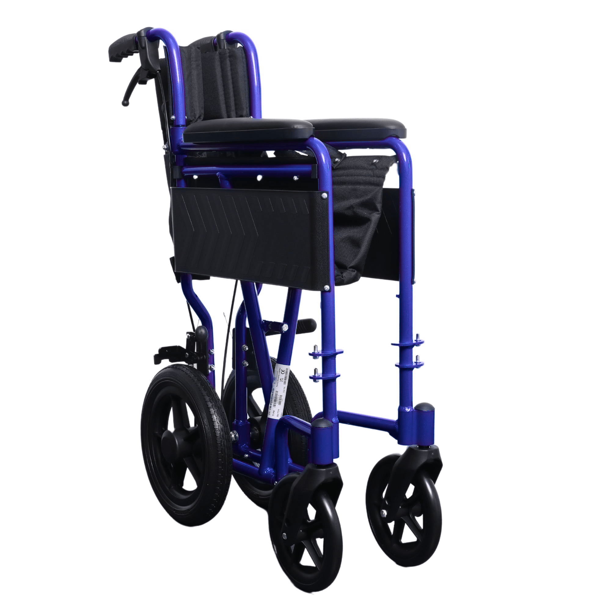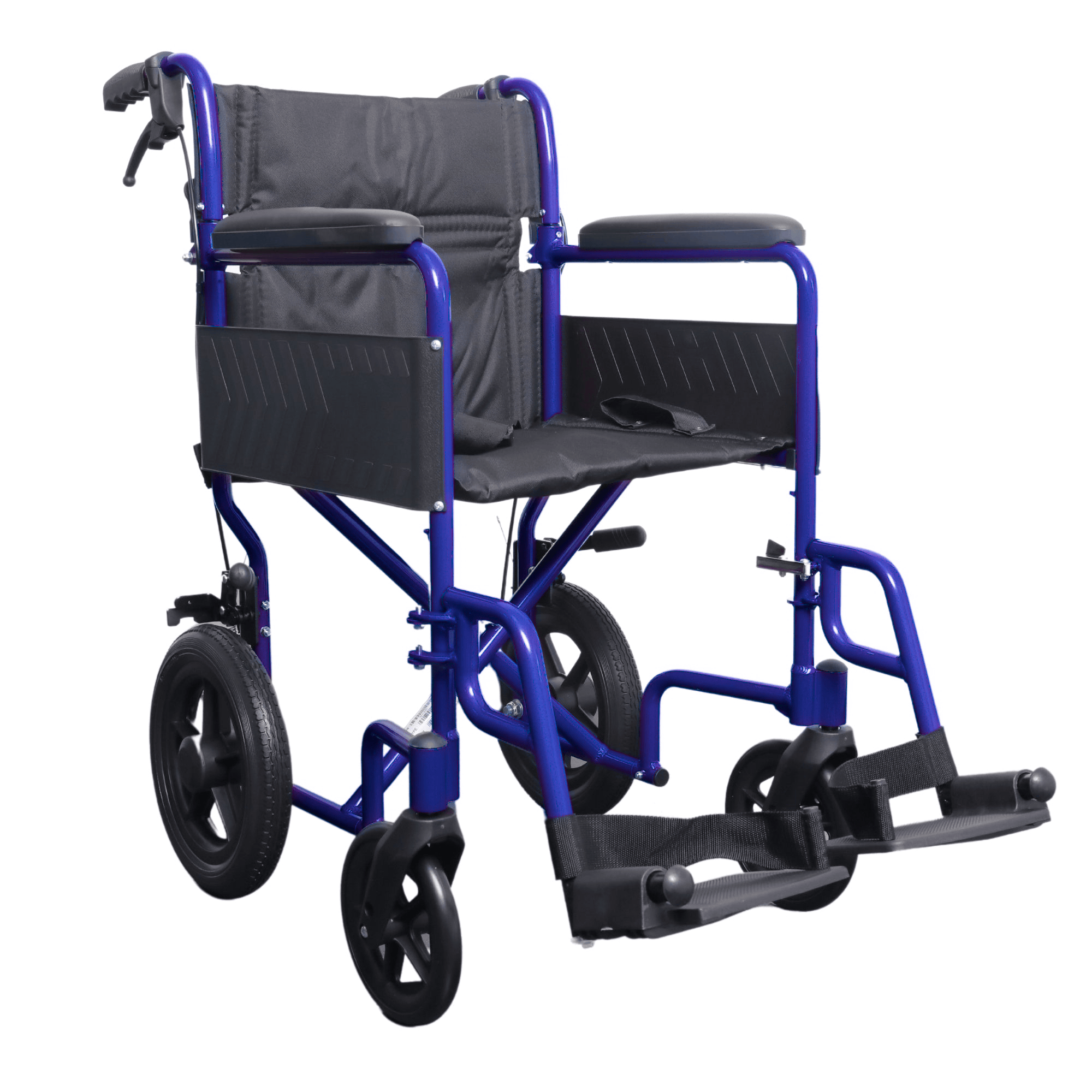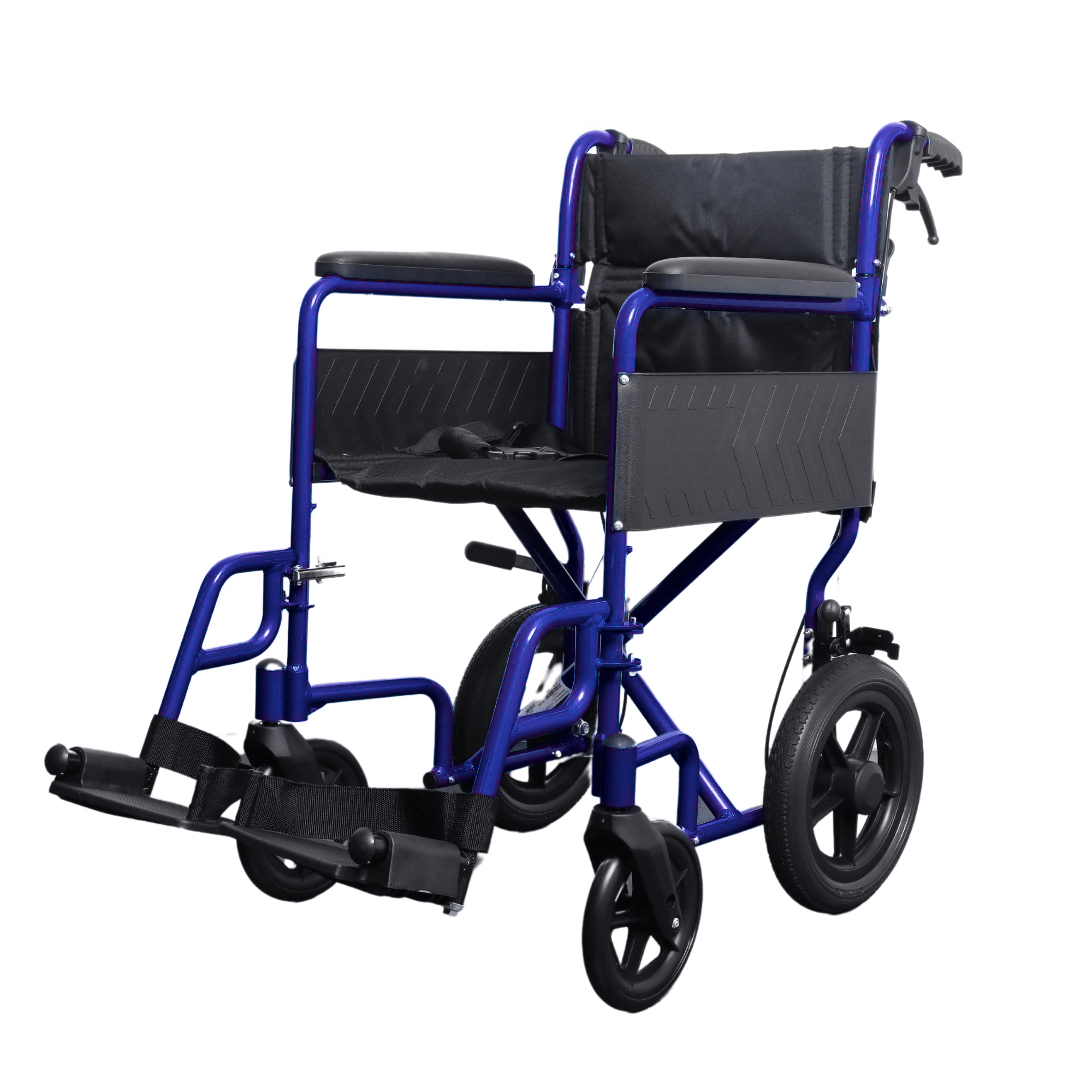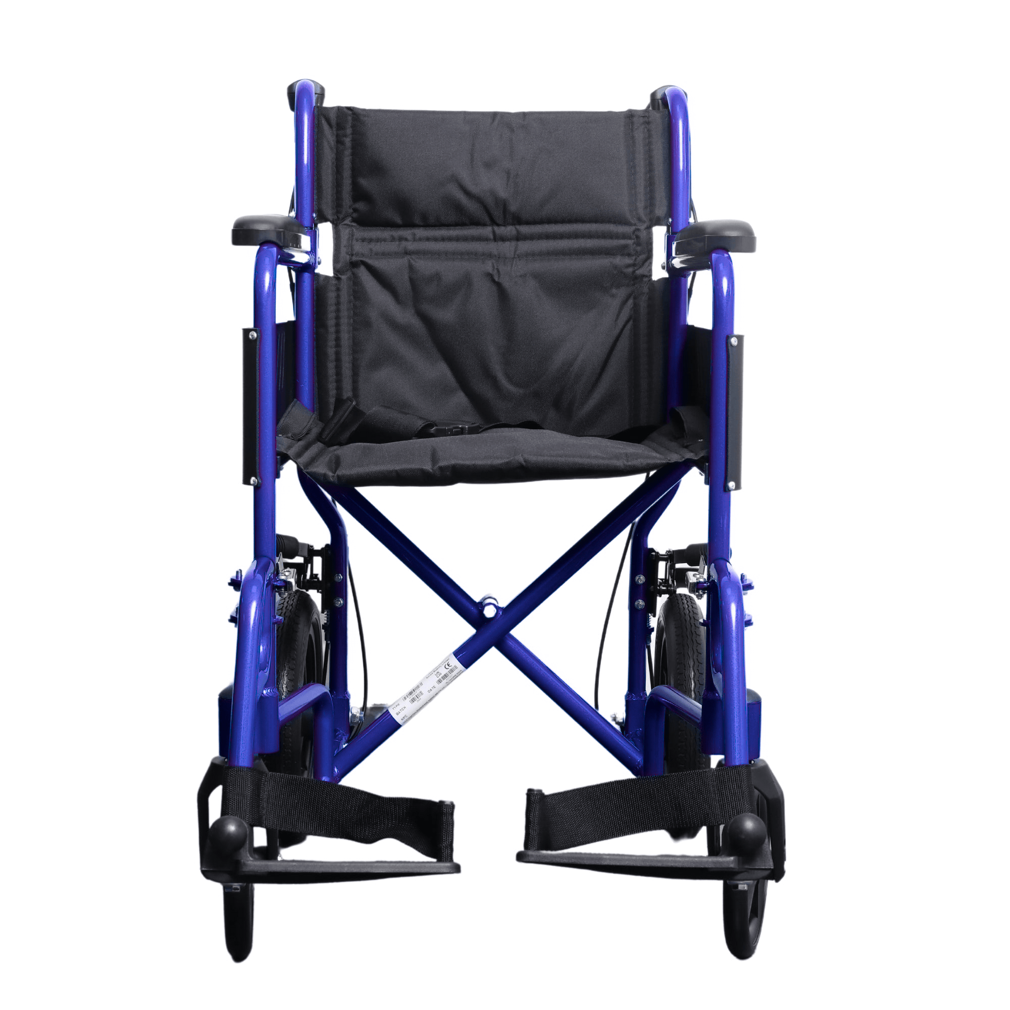 The i-Lite Travel Transit Wheelchair is a stylish occasional use wheelchair which is practical and light. The black wheels and castors set off the metallic paint finish beautifully. It folds down quickly into an easy-to-store or transport package and weighs just 11kg complete (9kg without the footrests).