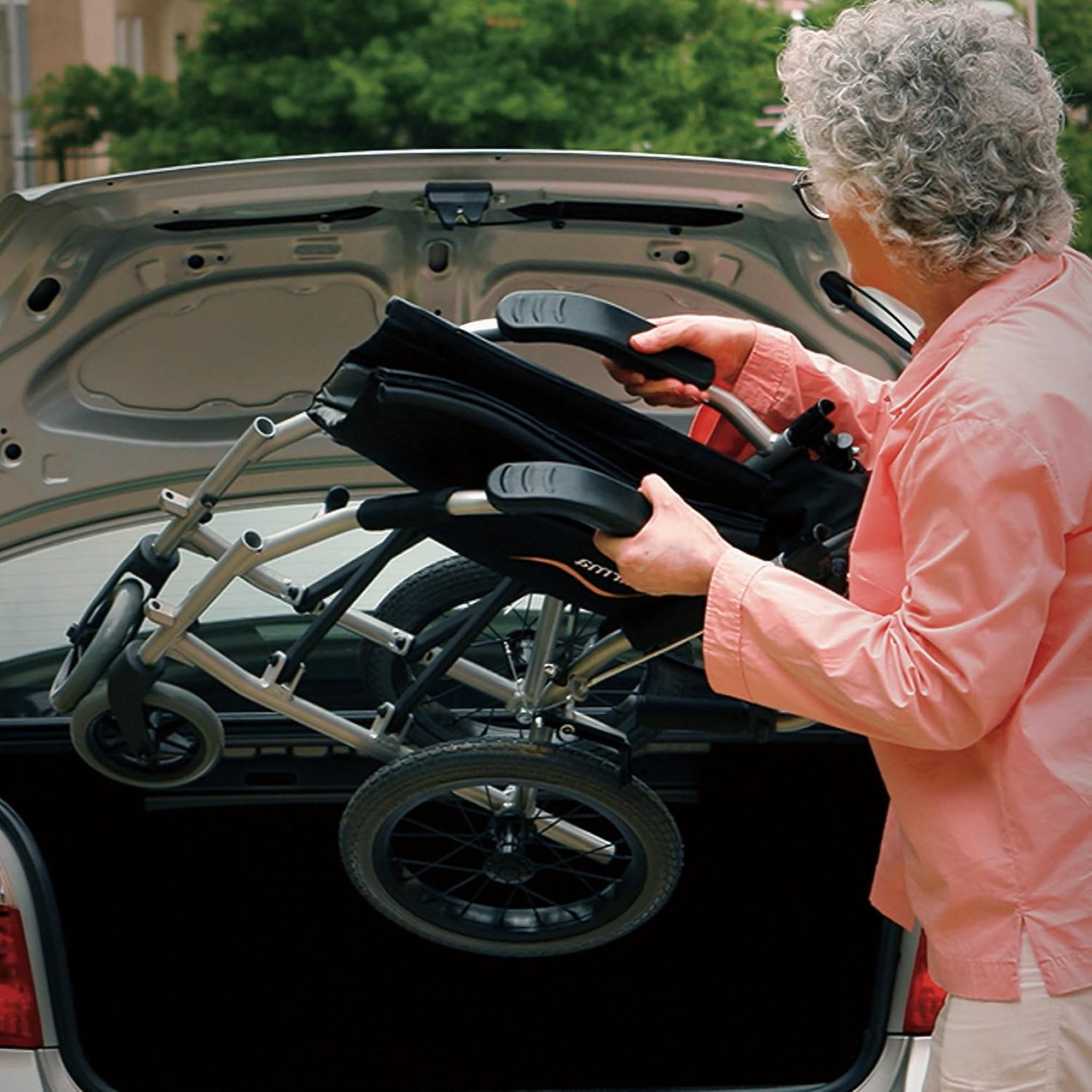 Storage and transport are a breeze with the Ergo Lite 2. After removing the rear wheels and footrests, the wheelchair weighs just 6.7 kg, making it highly portable and easy to stow away. The foldable backrest and compact frame further enhance its portability, ensuring it fits in small car boots and storage spaces with ease.