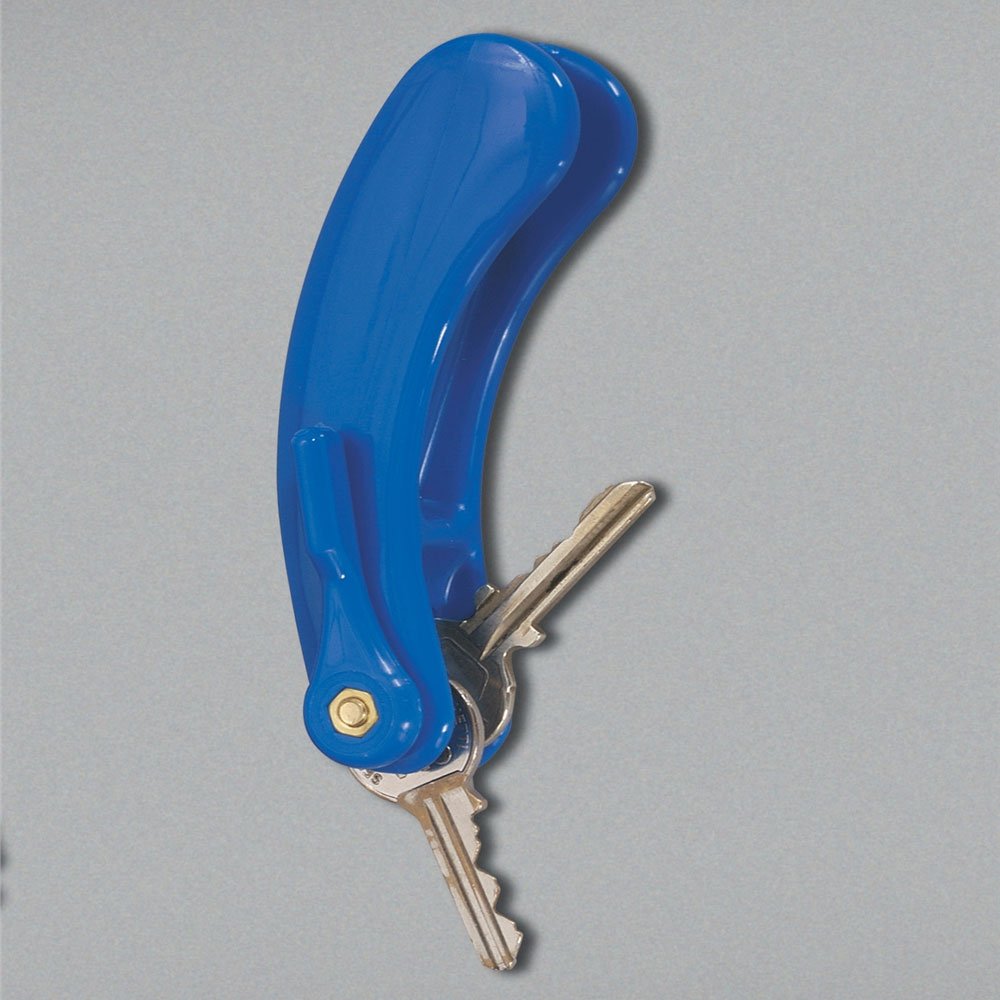 Designed with a large, curved handle to offer leverage for inserting a key into the lock and turning the key. The keys are held in place by a locking lever that holds them steady while the lock is being opened. This adaptive household aid is a great tool for individuals who struggle to hold and manipulate small keys.