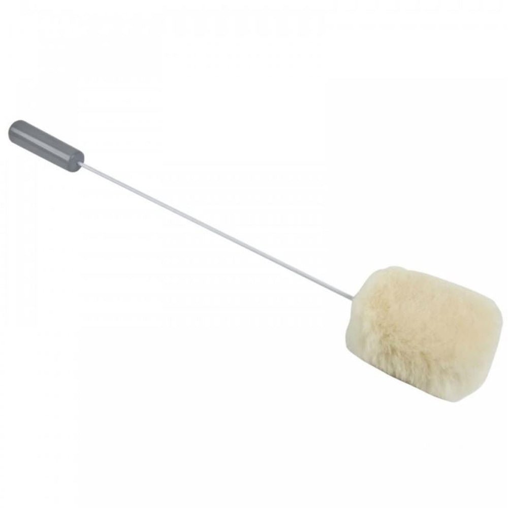 A luxury double thickness sheepskin pad with a plastic built up handgrip that can be bent to any angle required. Suitable for washing or powdering. Pad size 95 to 125mm (3 3/4 5). Length 610mm (24). Weight 135g.