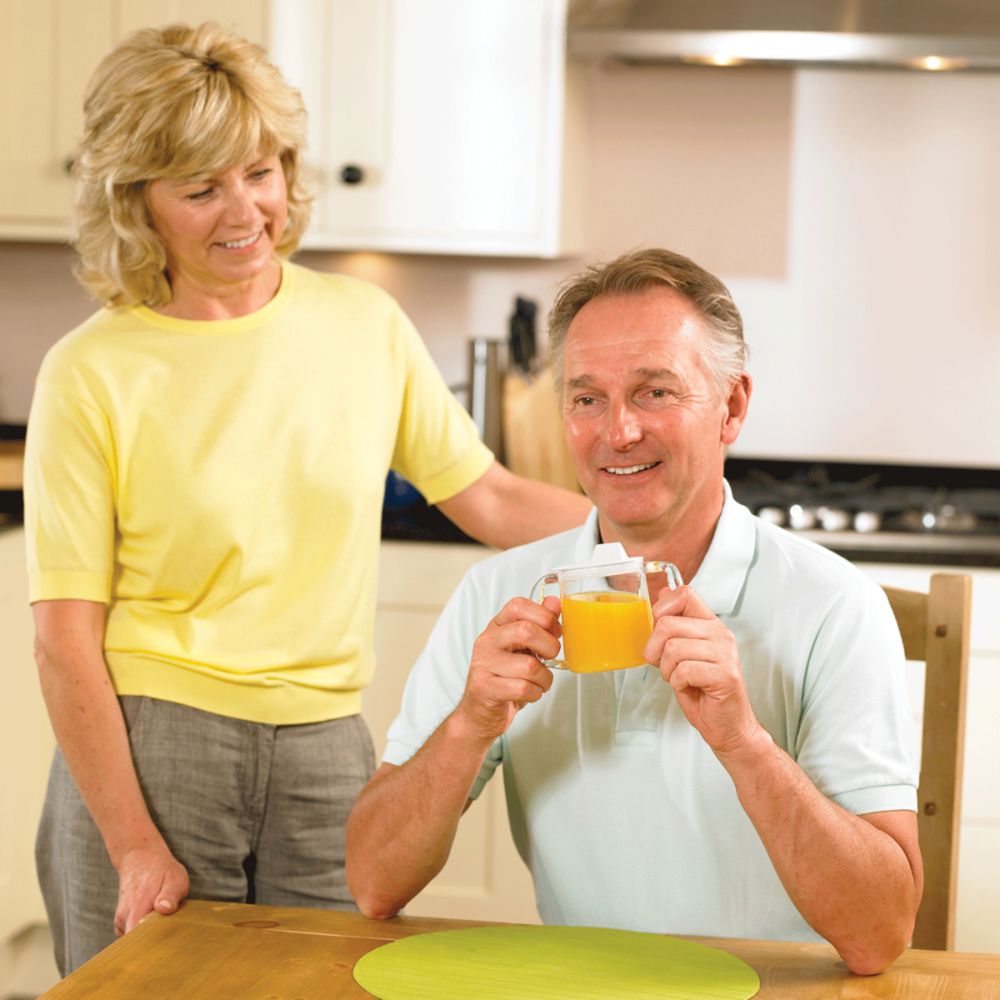 Caring Mugs are ideal for elderly, handicapped, and disabled users. The lids allow you to control the amount of liquid that is poured at once.