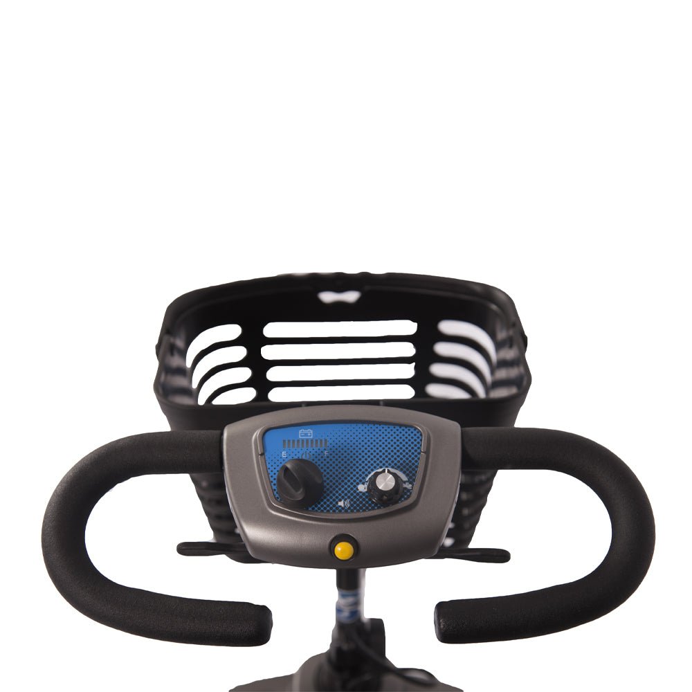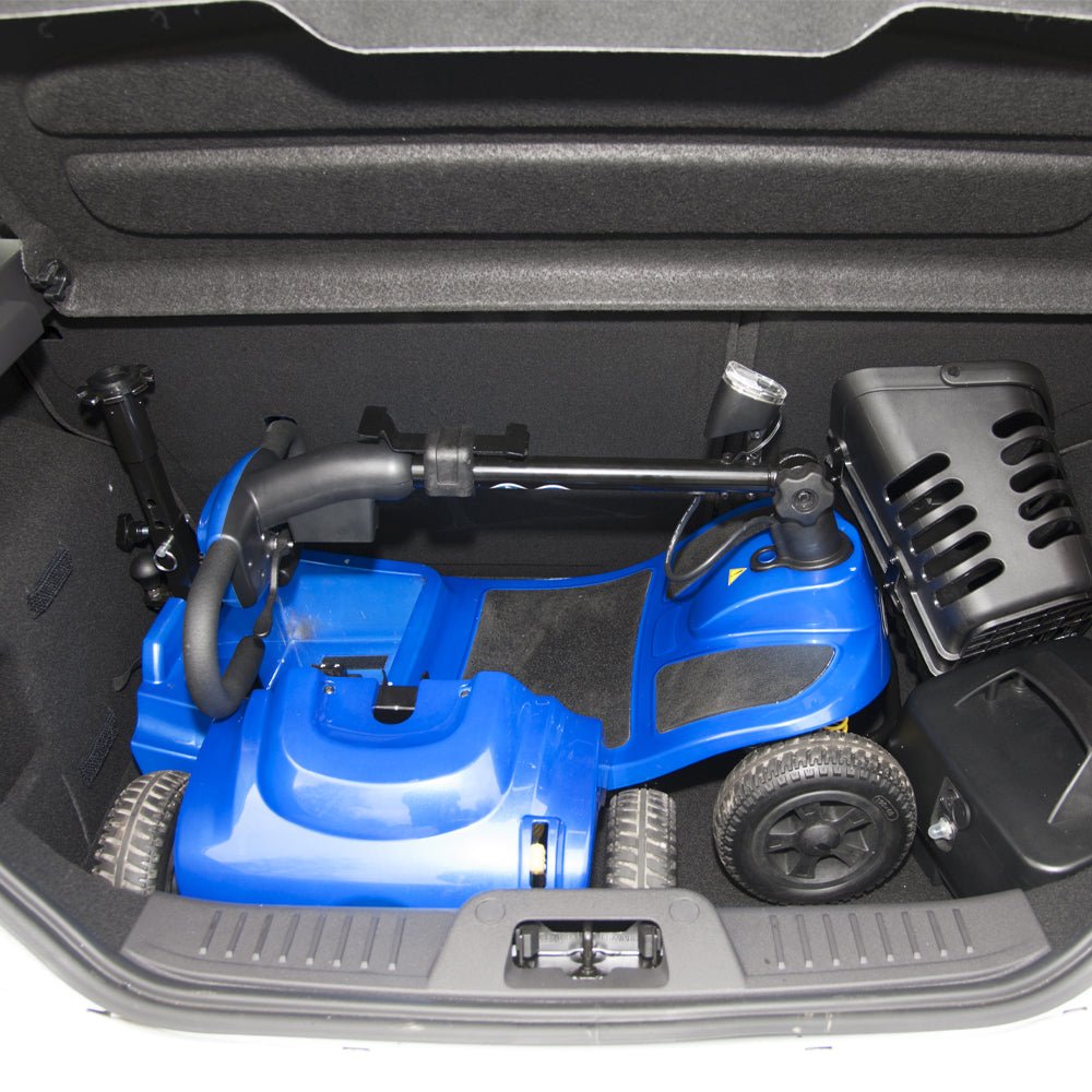 The Vogue is a wonderfully comfortable and fashionable scooter in our range with full adjustable suspension on the front and the back which provides a smoother, and more comfortable ride. The Vogue can be disassembled into five parts in just 30 seconds which aids with lifting and ensures a quick and safe lift into and out of your car. It also has great legroom for taller users giving a comfortable ride for all. Another detail is the secure-grip delta handlebar, which gives you full control over manoeuvring the scooter. The Vogue features an accessible battery pack which is simple to remove so you can move it to different charging locations. Also a second charging port is located in the tiller which allows for easy access when disassembling is not needed. The Vogue has an interchangeable battery pack which allows for a quick and cost-effective upgrade from 12Ah to 20Ah sized batteries, this ensures longer travel time and additional freedom. The scooter also has a powerful LED light, ideal for low light driving conditions.