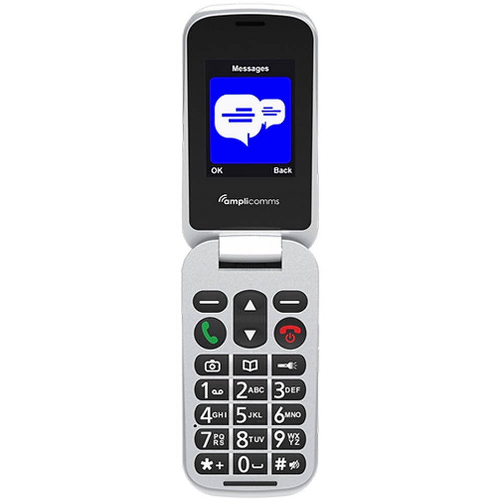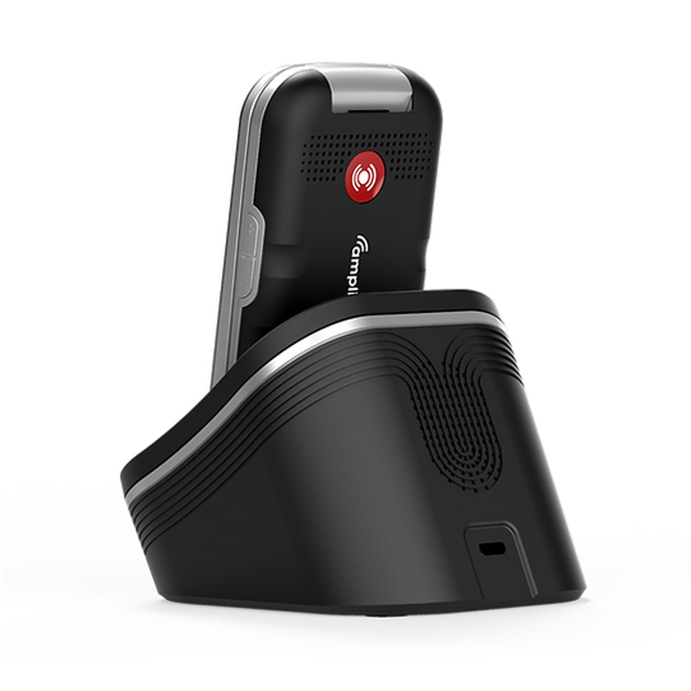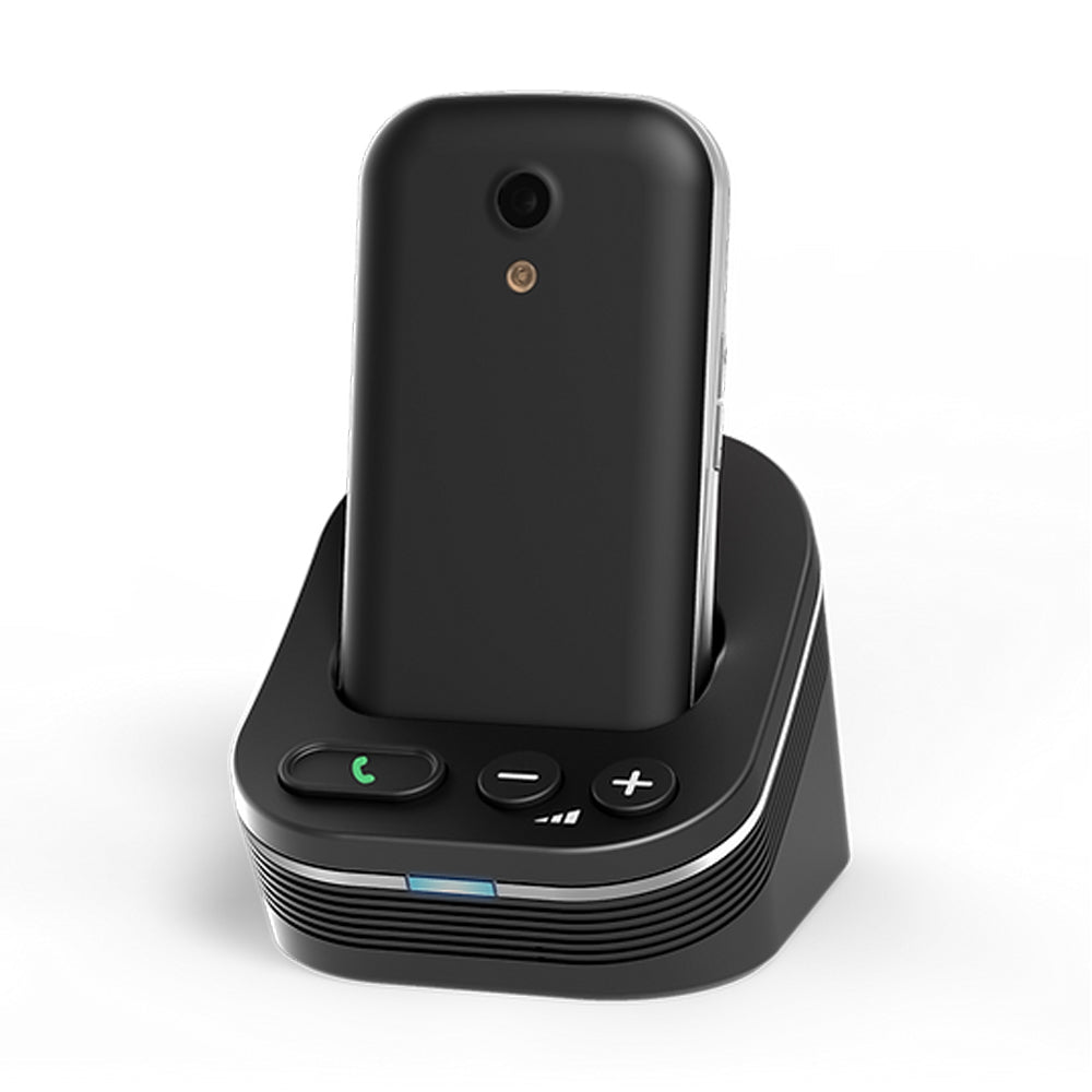 Easy to use 2G clamshell phone with comfort charging base with hands-free and text message notifications