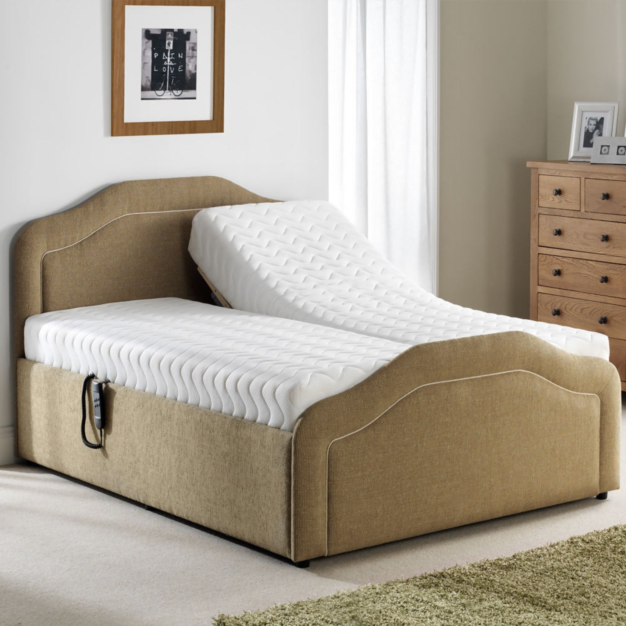 Enhance your sleep experience with the Pride Mobility Ollerton Adjustable Bed. Upholstered in luxurious Cristina Marrone fabrics, this bed combines classic style with hardwearing fabric upholstery, ensuring both elegance and durability in your bedroom.