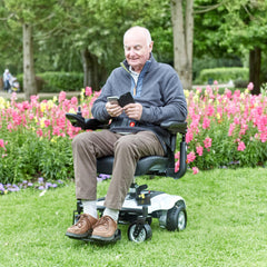 The Rascal Rio is a modern and stylish compact powerchair that's perfect for both indoor and outdoor use. Its sleek white design adds a touch of elegance to its impressive functionality, making it a standout choice for those seeking a reliable and stylish mobility solution.