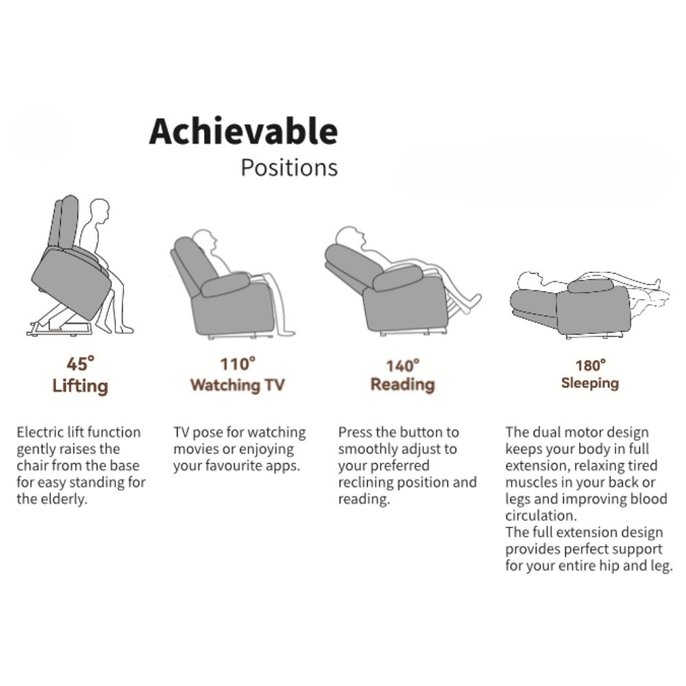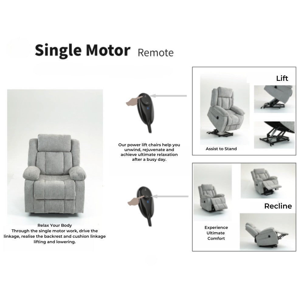 - Single Motor Rise and Recline: Effortlessly adjust the chair to your desired position with the touch of a button.