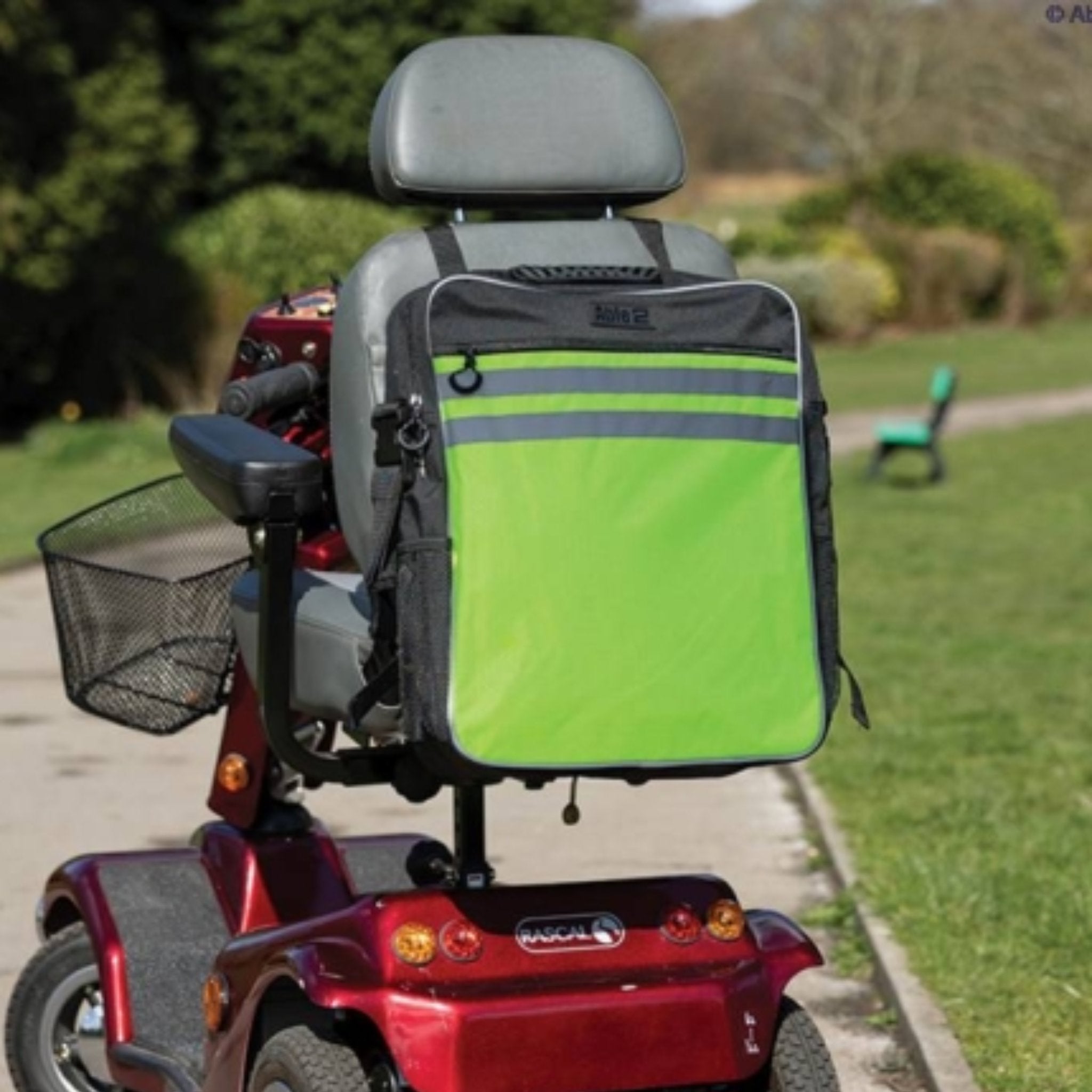 The adjustable straps allow the bag to fit comfortably over the back of a scooter, with room for a headrest if needed. The bag slides easily into place, providing a secure fit that stays in position.