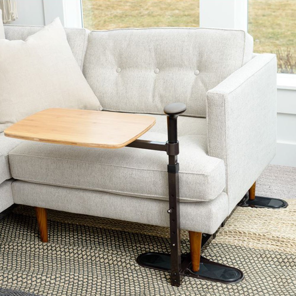 The Omni-Tray is a couch-side handle and TV tray that makes it easy to stand from your favourite couch or chair. It comes with a convenient multi-use swivel tray so you can eat, surf the web, or simply keep handy items close by. And like all of our products, it blends in with your living-room (like another piece of furniture) so you can maintain the comforting feeling of your home.