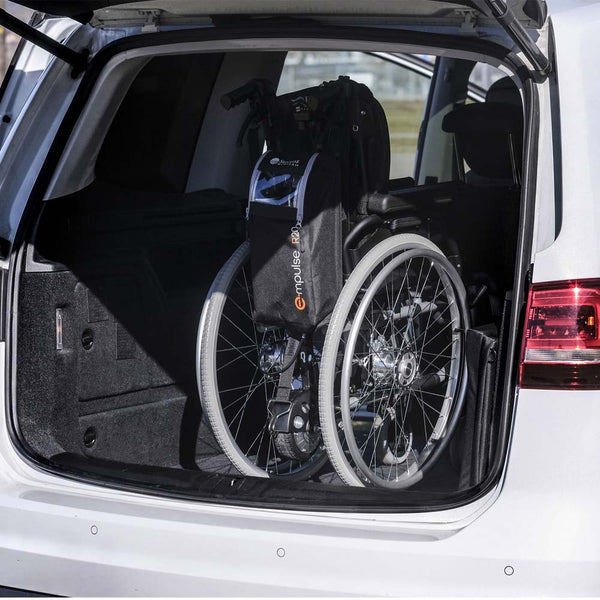 With the new Empulse R20 pushing aid it has never been so easy to support the attendant pushing the wheelchair. Whether uphill, downhill or long trips, the R20 helps in every situation. Combining a unique folding function, the lightweight R20 is under 5 kg providing easy transportation and literally no impact when self-propelling your wheelchair.
